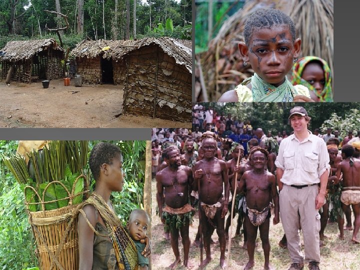 Life in the Rainforest Bambuti, also called Mbuti, are a group of Pygmies that are nomadic hunters and gatherers living in small groups of from 10 to 100 individuals. � Bambuti pygmies are the smallest people in the world, with the Bambuti men only 4. 5 feet tall. � The tropical rainforest provides their basic needs— food, fresh water from innumerable streams and springs, firewood, and clothing—which they supplement through trade with agriculturalists. � They make huts simply by forming a beehiveshaped frame of sticks covered with leaves. A group lives in a camp for up to a month and then abandons it. �