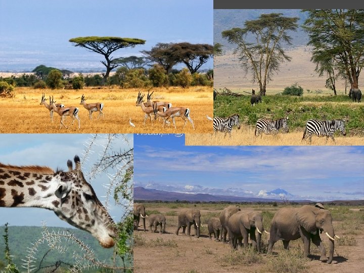 Savanna Africa's savannas stretch like seas of grass across the dry rolling plains. Once all home to migratory populations of wildebeest, elephant and wandering rhino, savanna wildlife is now limited to roaming the confines of game reserve areas. � Of the many African savannas, the Serengeti is most well known for its vast herds of wildebeest, gazelle and zebras. � African elephants are the world's largest land animals. They stand just under 9 ft. tall and tip the scales at over 13, 000 lbs. Elephants live up to 50 years, and go through six sets of teeth during their life. Most live in large, extended family units that can range from six to 70 individuals. �