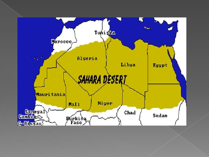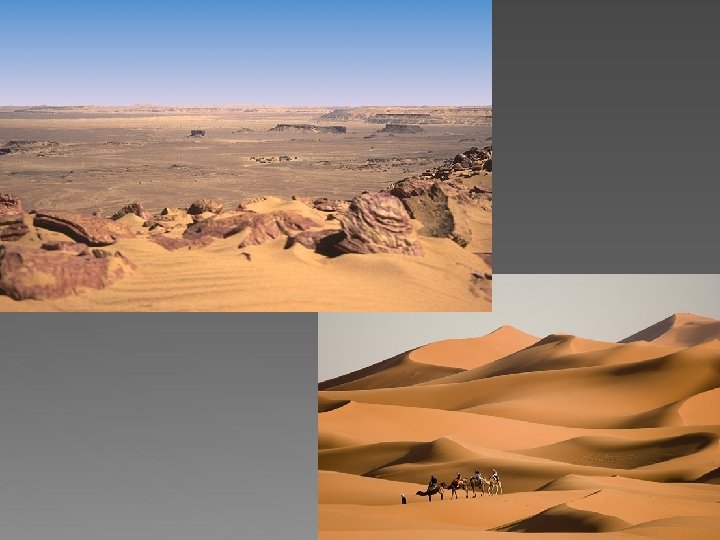 Sahara Desert � Most of the Sahara is not just sand dunes. The area has large expanses of flat land covered by gravel and dotted with rock formations. � This landscape can only be found in an environment, like the Sahara, where wind slowly erodes away rock and sand, creating some of the most unique (and really cool) geologic formations on the planet.