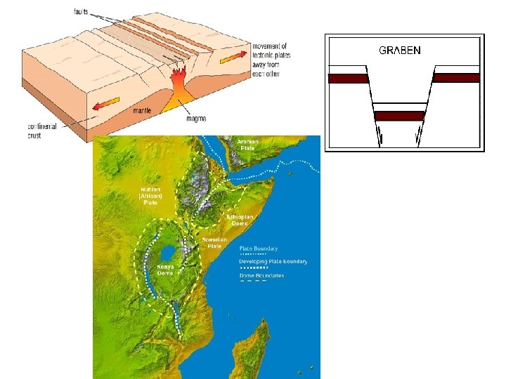 Distinctive African Landforms • Rift valley – a long thin valley created by the moving apart of the continental plates. Photo of the Great Rift Valley from the International Space Station