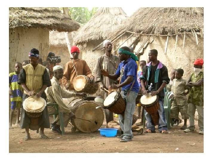 MUSIC • In much of Africa, percussion dominates the music. This is often in the form of a drum, but many other percussion instruments exist. • Music is often led by the lead or master drummer with the ensemble musicians playing additional rhythms around that beat.