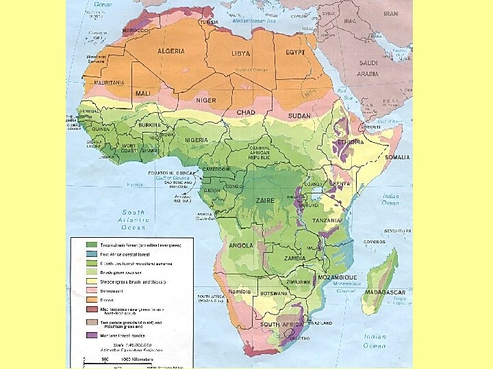 Sub-Saharan Africa: A Challenging Geography • Large area with many different environmental zones and many geographical obstacles to movement – Sahara Desert—North Africa • World's largest desert – Maghreb—northwest Africa • Coastlands and Atlas Mountains of Morocco, Algeria, and Tunisia – Sahel—belt of grasslands south of Sahara – Sudan—just below the Sahel – Guinea—rainforests • Along Atlantic coast from Guinea to Nigeria – Congo—rainforest region of Congo River Basin – Great Lakes—series of five lakes