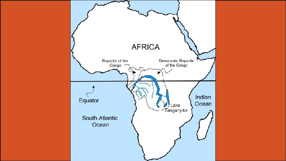 Congo River • The Congo River is located in western central Africa. • It begins in central Africa, near Lake Tanganyika, and flows west through the tropical rain forest. • The Congo River is the second largest river in Africa. • It’s over 3, 000 miles long.