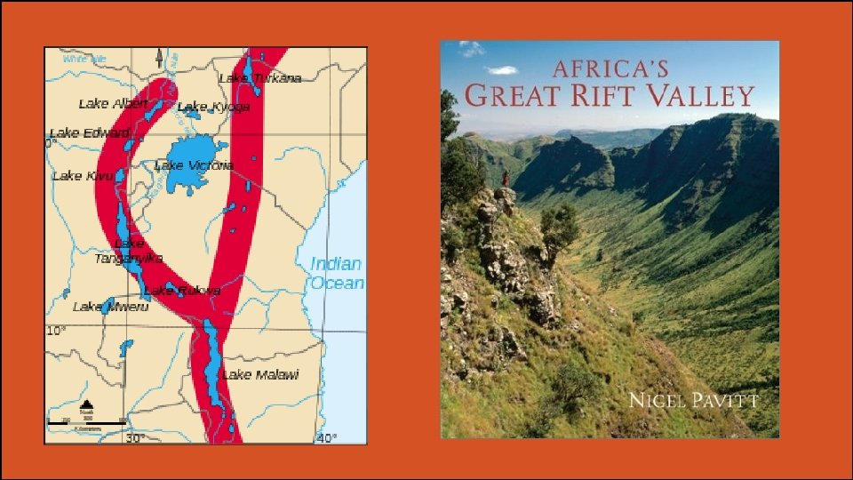 Great Rift Valley • The Great Rift Valley is a name given to the continuous geographical trench, about 3, 700 miles in length, that runs from northern Syria in Southwest Asia to central Mozambique in east Africa. The rift is bordered by a series mountains and active volcanoes. It is a site of faults and earthquakes. • Basically, the western part of Africa is pulling away from the eastern part. • This causes all the geological activity at the Valley. Far in the future, a sea will run between these two parts of Africa.