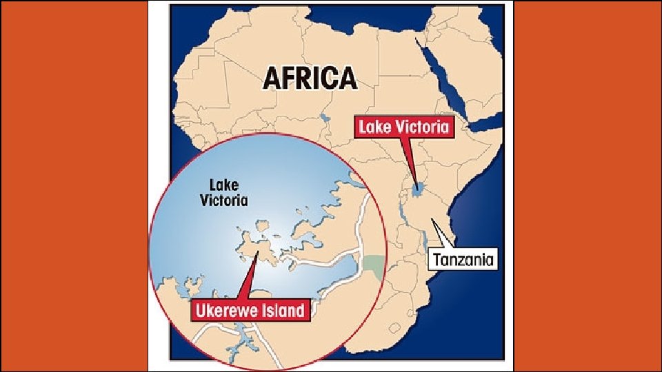Lake Victoria • Lake Victoria is the largest lake in Africa and the second largest freshwater lake in the world (Lake Superior is the largest). • It is located in central Africa and extends into three countries: Tanzania, Uganda, and Kenya. • White Nile begins here. • Lake Victoria is vital in supporting the millions of people that live nearby. • It provides a living for many fishermen and attracts millions of tourists each year.