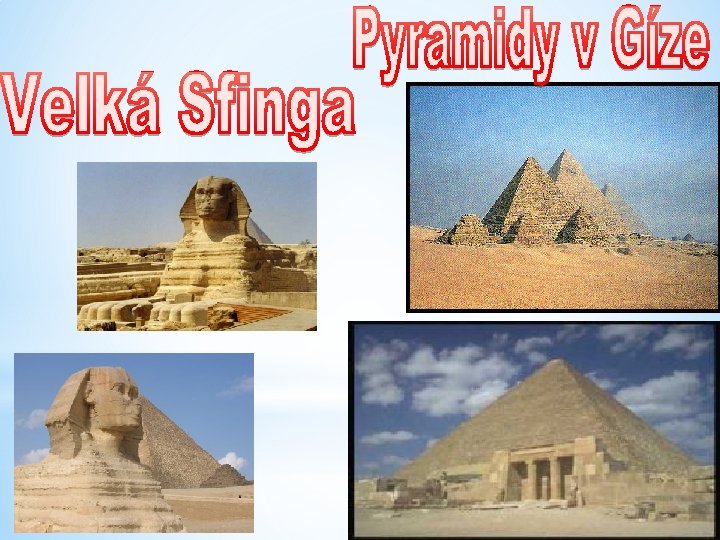 *Tato země je známá především díky starověké civilizaci a několika světově proslulým monumentům, jako jsou například pyramidy v Gíze a Velká Sfinga. Město Luxor, které se nachází na jihu Egypta, skrývá početné starověké artefakty, jako například chrámový komplex Carnac a Údolí králů. Egypt je obecně považován za kulturně a politicky důležitý národ i z oblasti Středního východu.