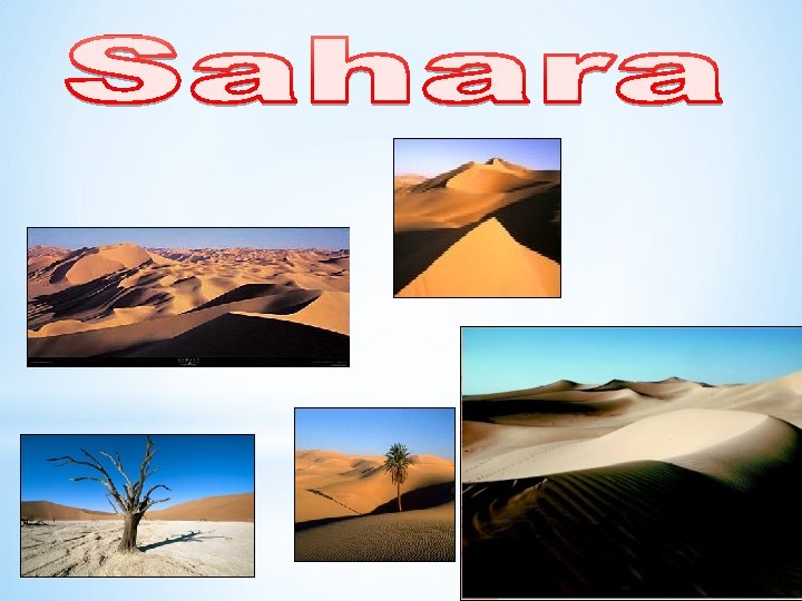 *Je největší poušť na severu Afriky podél Obratníku Raka mezi Atlantským oceánem a Rudým mořem. Jižní okraj tvoří řeka Senegal, střední tok Nigeru, Čadské jezero a soutok Nilu s Atbarou. V posledních letech vlivem extrémního sucha poušť postupuje dále k jihu do oblasti zvané Sahel. Má rozlohu 9 000 km čtverečních. *
