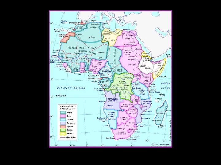 Följder av imperialismen • Folkminskning pga. sjukdomar, hungersnöd, våld • Kolonierna tvingades bli råvaruproducenter. Naturresurser forslades ut • Många kolonier fick onaturliga gränser • Bidragande orsak till dagens fattigdom • Nationalistiska idéer sprids som bidrar till självständighet • Fördröjde många staters självständighet och demokratisering