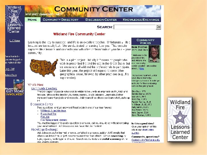 Burn Boss Community of Practice üInformal group of people with similar work-related activities and interests üCan belong to multiple agencies or reporting structures üCommunity members regularly transfer and retain knowledge