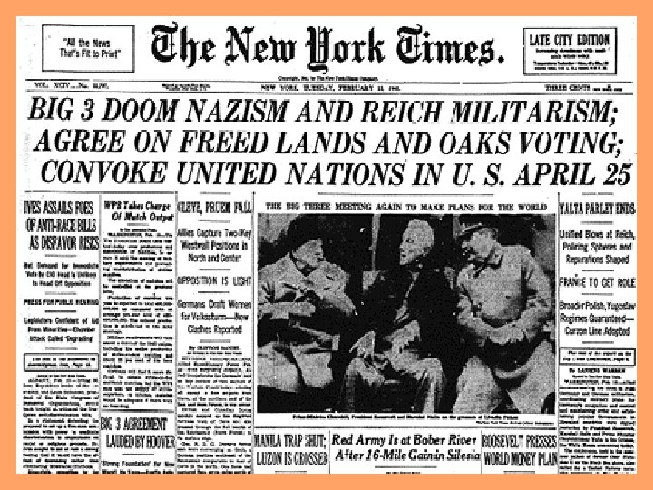 Yalta Conference Yalta and Potsdam Conferences http: //www. pbs. org/behindcloseddoors/in-depth/theconferences. html#Argonaut 2