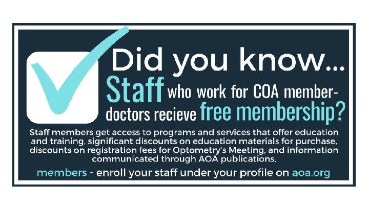 ENDORSED BUSINESS PARTNERS GIVE AOA ENDORSED BUSINESS PARTNERS YOU: GIVE YOU: Ø Group Purchasing Discounts Ø Optometry’s Career Center Ø Student Loan Consolidation Ø HIPAA Compliance Ø Practice Transitions Williams Group hotline for members : (866) 595 -1471 Ø Retirement Planning Ø Health IT Solutions Ø Credit Card Processing Ø Practice Financing Free 15 -minute consultation for members: (800) 523 -1125 WWW. AOA. ORG/AOAEX