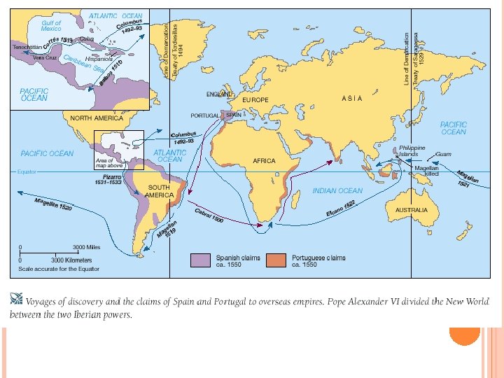 TREATY OF TORDESILLAS 1494 Between Spain and Portugal Line drawn on the map by the Pope. Unsure of Geography