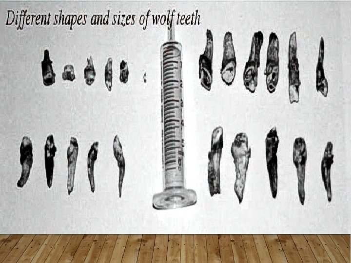 WOLF TEETH • Wolf teeth are similar to our wisdom teeth • Some horses have them, others don’t • Some have to be removed, others don’t • No functional purpose today • Residual “appendage” from past • “Wolf” used to mean “bad” • appears in front of upper molars