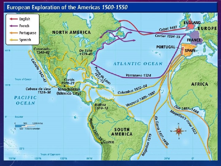 OTHER EXPLORERS • 1510 – 13 Vasco de Gama, Panama and the Pacific Ocean • 1511 Juan Ponce de Leon reaches Florida searching for the fountain of youth • 1519 Ferdinand Magellan, sailed (circumnavigated) around the world. He dies on the voyage. • 1524 Giovanni da Verrazzano, New York Harbor • 1534 Jacques Cartier, Lake Champlain Montreal • 1540 Francisco de Coronado, Southwestern U. S.