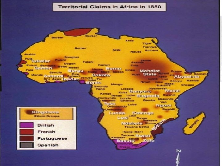 Agenda 2/15/17 • • TEKS: (6. 1 A) trace characteristics of various contemporary societies in regions that resulted from historical events or factors such as invasion, conquests, colonization, immigration, and trade. (6. 1 B) analyze the historical background of various contemporary societies to evaluate relationships between past conflicts and current conditions. (6. 4 C) explain ways in which human migration influences the character of places and regions. Language Objective: Students will understand how European nations colonize Africa and divided Africa for their own benefit. • Imperialism in Africa Map activity • Imperialism in Africa handout • Closure: review African Imperialism map activity • HW: none