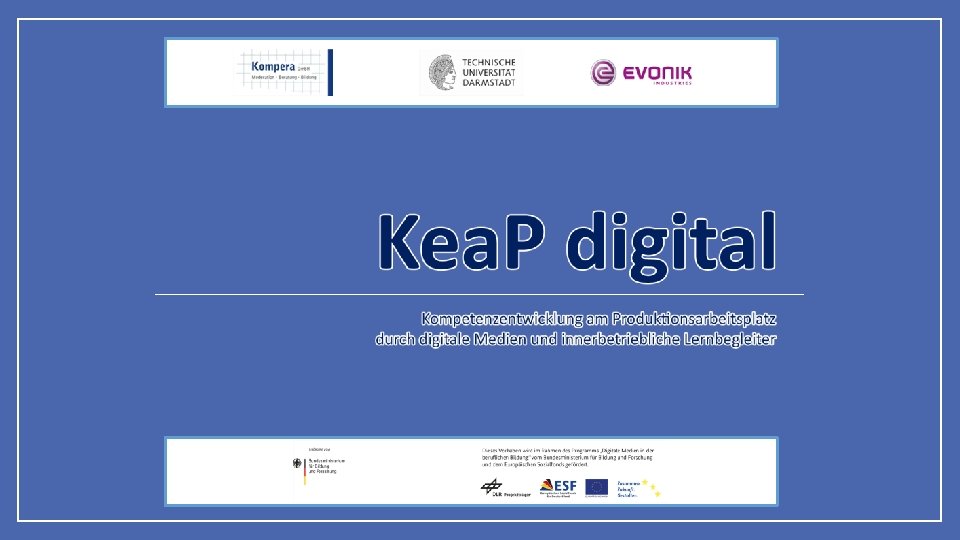 Agenda • Begrüßung Wer sind wir? • Wer sind Sie? • • Einführung • • • Sie sind am Zug: praktische Erfahrungen • • Umfeld und Herausforderung in der Einarbeitung in der Produktion Kea. P Methode Projektvorgehen und -status Kea. P Lernanwendung Darstellung des Systems (Beispielkurs und kurze Videos) Selbständige Erstellung eines Lernauftrags mit dem Kea. P Assistenten Erfahrungen und Diskussion