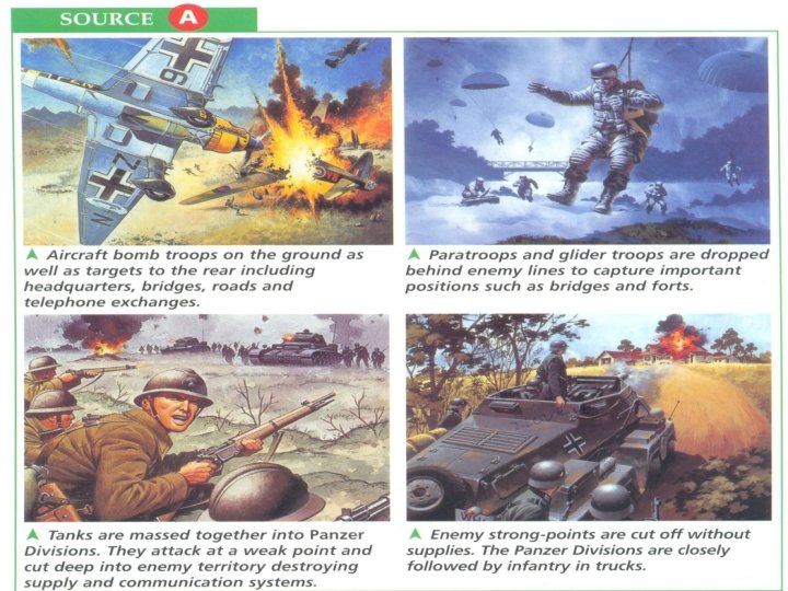 BLITZKRIEG MEANS LIGHTNING WAR – IT WAS AN ATTACK USING BOTH GROUND TROOPS AND AIR FORCE WORKING TOGETHER TO HIT TARGETS