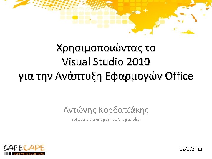 Agenda • • Office Solutions Development Demo 1: Office Automation Demo 2: Ανάπτυξη Outlook Add-in Ερωτήσεις