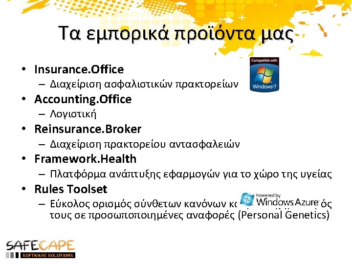 Share. Point development on Visual Studio 2010 • Ανάπτυξη και σε Windows 7 με τοπική εγκατάσταση Share. Point 2010 • Project and Item Templates – Templates for most Share. Point elements – Support for sandboxed solutions • Visual Designers – Design web parts – Build Business Data Connectivity (BDC) models – Create Workflows • Workflow Enhancements – Site level workflows – Templates for association & initiation forms