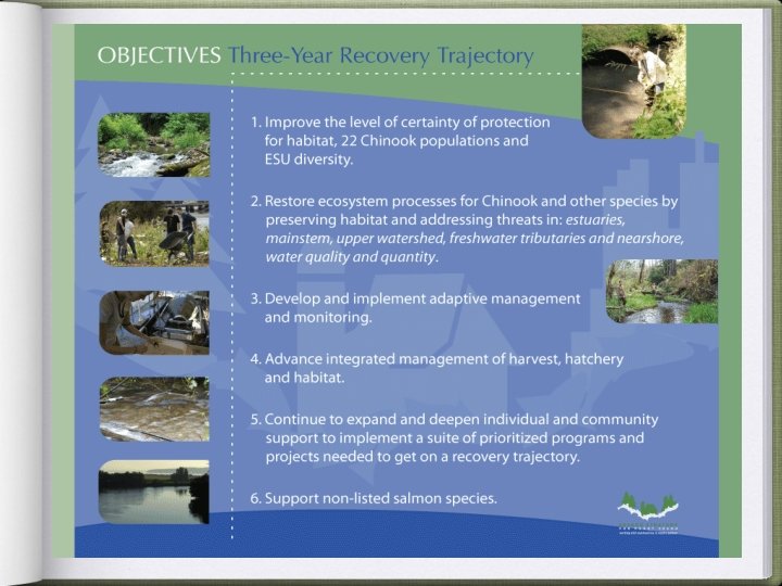 Decisions July Meeting 1. What are the best investments for salmon recovery in the next three years? 2. What strategy do we want to use to distribute funds? 3. What level of funding do we to pursue? 4. How do we want to address non-listed salmon species?