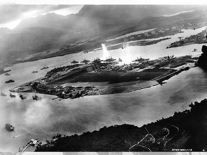 Pearl Harbor • December 7, 1941 • hundreds of Japanese bombers & fighters attacked naval base Pearl Harbor • RESULTS • 2, 400 Americans dead • nearly 200 aircraft destroyed • all but 8 battleships were sunk/damaged • December 8 US declares war on Japan • December 11 Germany & Italy declare war on US