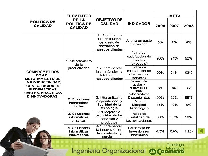 Política de Calidad Comprometidos con el mejoramiento de la productividad, con soluciones informaticas fiables, practicas e innovadoras