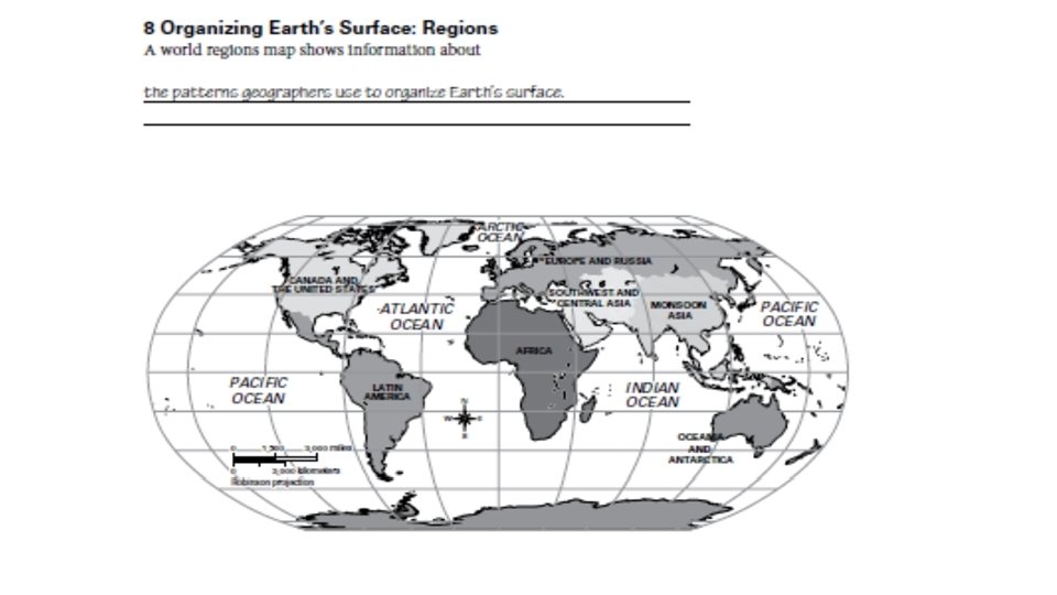 Monday 9/12/16 • Warm up: watch regions video (next slide). On your sheet- Define a REGION • A Spatial Way of Thinking – Sections 7 & 8 • Economic Activity: Land & Resources • Regions • Film – Geographical Features: Landforms • HW: Finish “A Spatial Way of Thinking” (if you have any missing sections) • Test Friday Sept 16 th