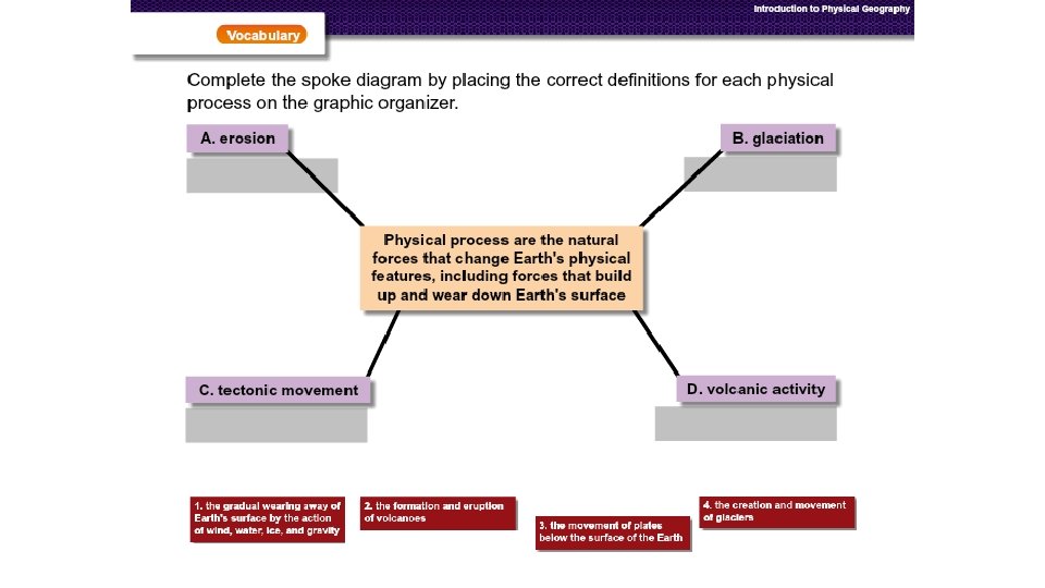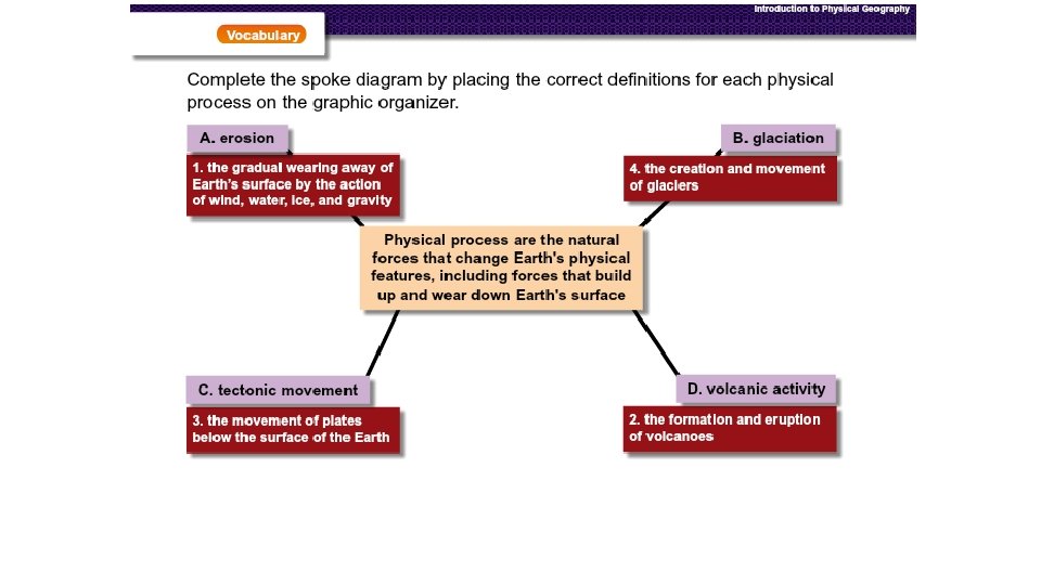 • Physical Process: Erosion Glaciations Tectonic Movement Volcanic Activity