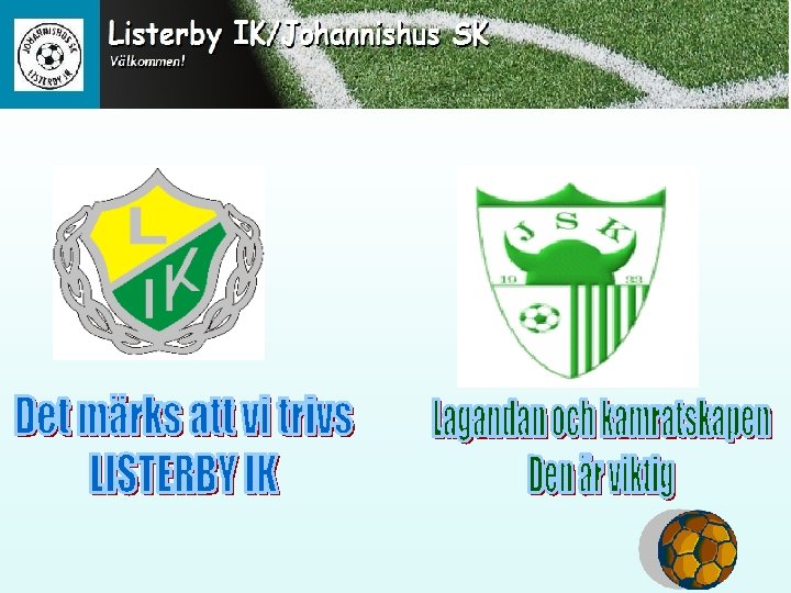 • AGENDA • • VÄLKOMNA VÅRT LAG, VÅRA MATCHER, VÅRA TRÄNINGAR INFORMATION FRÅN FÖRENINGARNA FÖRÄLDRADOKUMENT VAD HÄNDER I LISTERBY IK/VÅRA EVENEMANG VAD HÄNDER I JOHANNISHUS SK FORSATT DIALOG/FRÅGOR