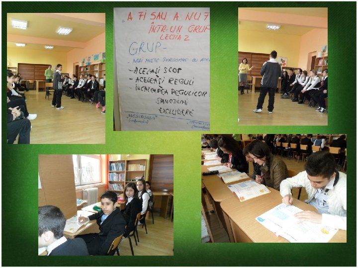 Lecţia 2 – A fi sau a nu fi într-un grup Obiective: Elevii: • Au aflat că apartenenţa la un grup este necesară pentru dezvoltarea lor personală; • Au învăţat despre grupuri; • Au învăţat despre modificarea comportamentului sub influenţa grupului; • Au experimentat cum este să fi exclus dintr-un grup.