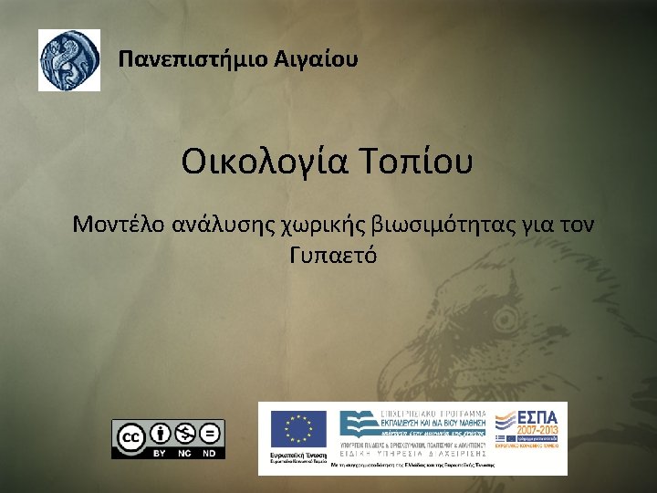 Study area History of Gypaetus barbatus in Crete 80’s – 00’s: Rapid decline of the population • Active breeding sites: from 20 to 6 (from 12 – 14 to 4 reproductive couples) Causes of decline • Lack of protected areas where reproduction takes place(only 23% ) • Use of poison bates • Human pressure near nests (e. g. Roads) • Human persecution (7 cases in the 90’s) Part 3