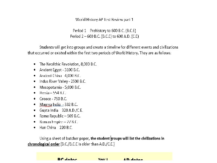 Period 1 – Prehistory to 600 B. C. • From their origins in East Africa, nomadic humans slowly migrated across the earth, hunting and foraging for food • The development of farming (8, 000 B. C. ) marked the beginning of the Neolithic Revolution, where people began to settle by rivers/river valleys • Sedentary lifestyles led to the development of specialized skills, increased trade and bartering, and more complex forms of government • 4 River Valley Civilizations emerged: Mesopotamia, Egypt, Indus Valley, China • All civilizations developed writing systems, centralized authority into kingdoms, and developed social classes • Civilizations also developed distinct religious and cultural traits – introduction of priest/god kings (theocracy) • Development of bronze and, later, iron metallurgy (weaponry) spreads from civilizations as well as other goods – facilitates trade between them