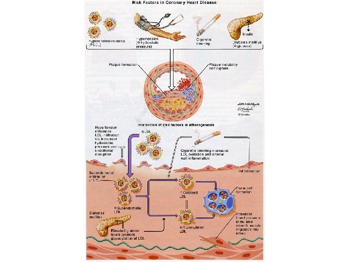 Table 16 -5: General Characteristics of Atherosclerotic Lesions Early onset -- progressive Focal lesions Early lesions Advance lesions Damage, Repair, Regression Progression of localized lesions influenced by: Local factors: vessel structure and metabolism, blood turbulence Systemic factors: diabetes, hypertension, stress, genetic predisposition