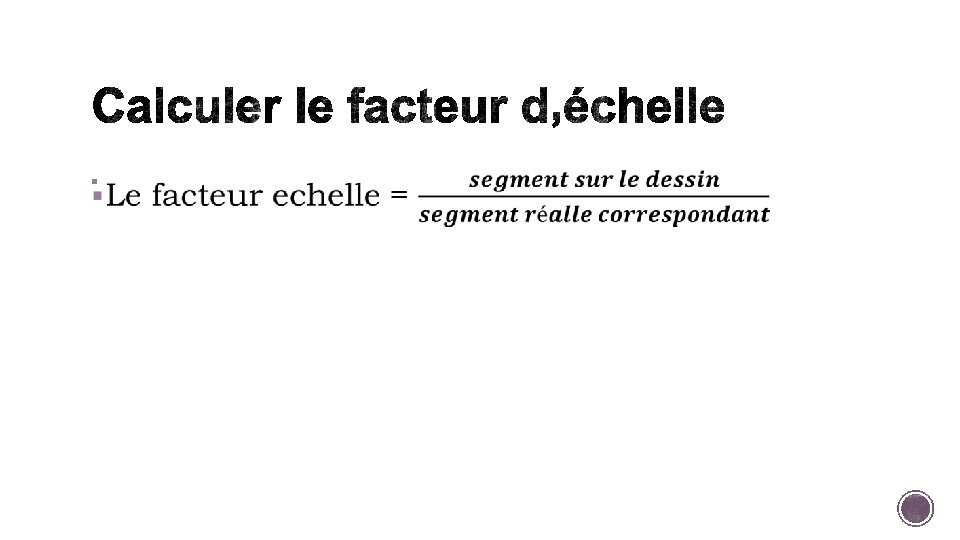 § Le facteur (nombre) par lequel toutes les dimensions d’un diagramme/objet sont multipliés § Si le facteur d’échelle est > 1, l’image va être plus grand que l’original (un agrandissement) § Si le facteur d’échelle = 1, l’image va être la même taille que l’original § Si le facteur d’échelle < 1, l’image va être plus petit que l’original (une réduction)