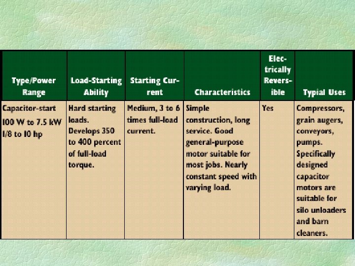 Capacitor motors § Are a variety of types of capacitor motors. § Are used for hard to start loads such as water pumps or air compressors.