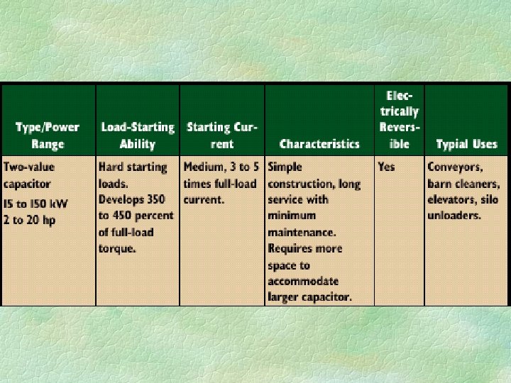 Capacitor motors § Have starting and running windings in the stator and have squirrel-cage rotors. § Account for the majority of electric motors sold for farm use.