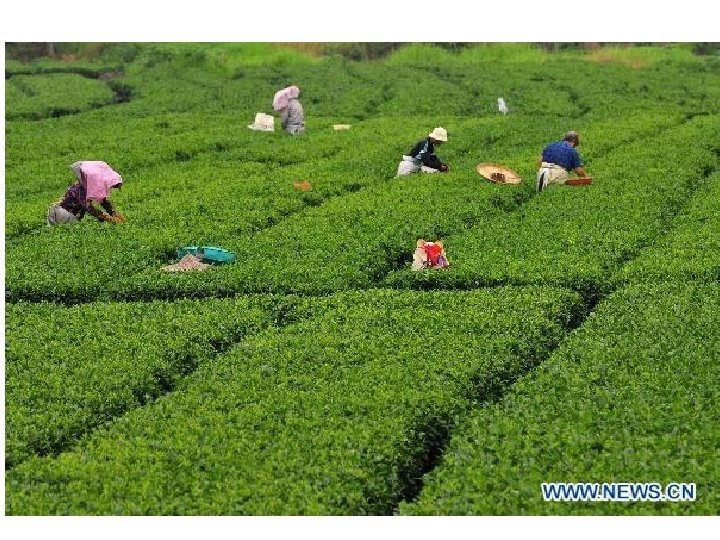 4) Plantation farming • Predominance of a single crop farming. • Raised on large estates of about 100 acres each. • Are scientifically managed. • Crops raised only for sale. • Involves large number of labourers and huge capital outlay. • Common in Kerala.