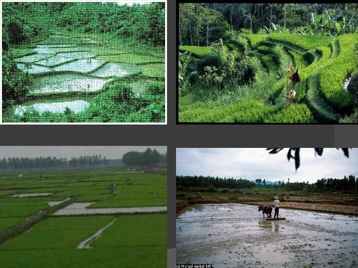 Wet Rice Terraces in Indonesia Terraces create flat land for wet (irrigated) rice on hilly land in Indonesia.