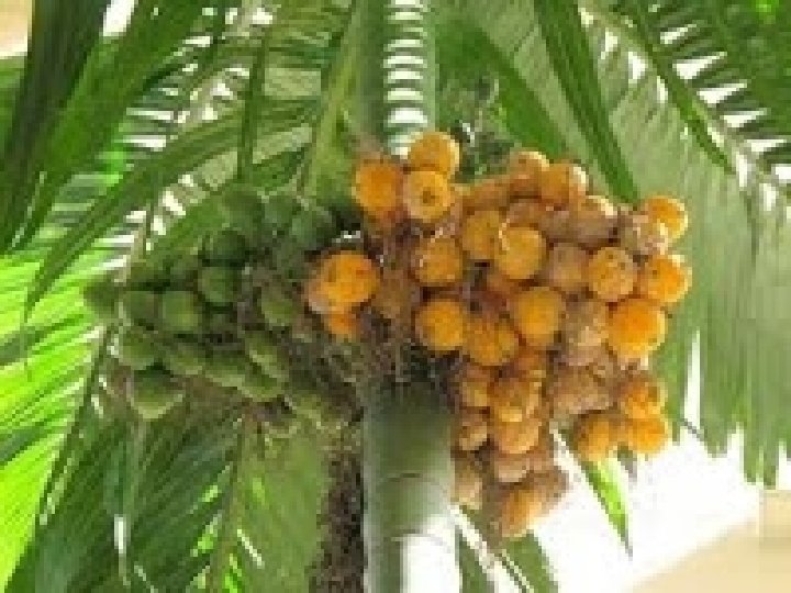 • Merupakan tanaman famili Arecaceae yang dapat mencapai tinggi 15 -20 m dengan batang tegak lurus bergaris tengah 15 cm • Tanaman ini berbunga pada awal dan akhir musim hujan dan memiliki masa hidup 25 -30 tahun • Biji buah berwarna kecoklatan sampai coklat kemerahan, agak berlekuk-lekuk dengan warna yang lebih muda