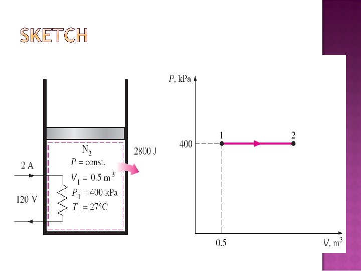 � In this case we will have boundary work, Wb. Also, heat is lost (Qout) from the system and electrical work is done on the system (Wein) � Electrical work done on the nitrogen: � The mass of nitrogen is determined from