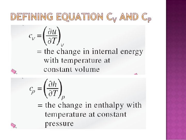 � The u and h relations given previously are not restricted to any kind of process. They are valid for all processes. � The presence of the Cv in an equation should not lead one to believe that this equation is valid for a constant-volume process only. � The relation u = Cv, avg T is valid for any ideal gas undergoing any process. � Similar argument can be given for Cp and h.