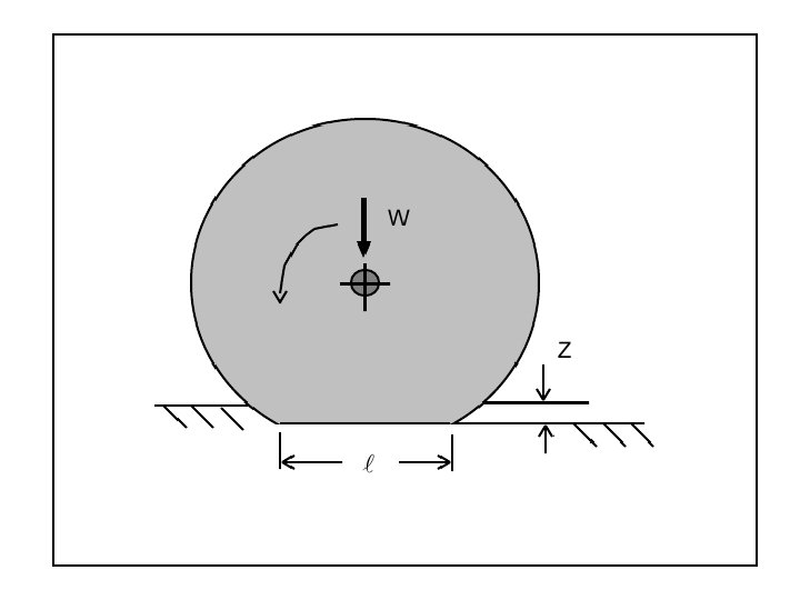 SOFT WHEEL ON SOFT SURFACE • Consider the work done in towing such a wheel a distance, l against the rolling resistance, R. In simple terms, if this is equal to the work done on forming the rut as for the plate, length l, width b pressed into the soil, then: