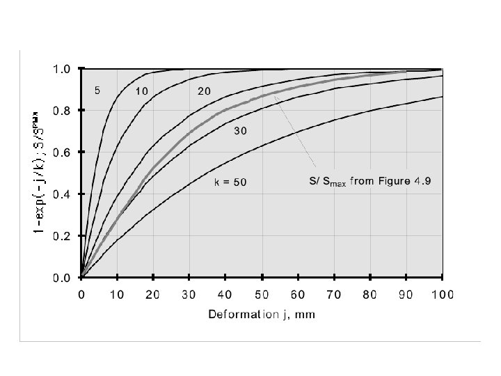 TRACTIVE FORCE Shear stress - deformation characteristic for soil S = Smax (1 – e-j/k) Smax = (c + σ tan φ) S = (c + σ tan φ) (1 – e-j/k) Where: c = soil cohesion φ = angle of internal friction σ = normal stress j = shear deformation k = shear deformation modulus