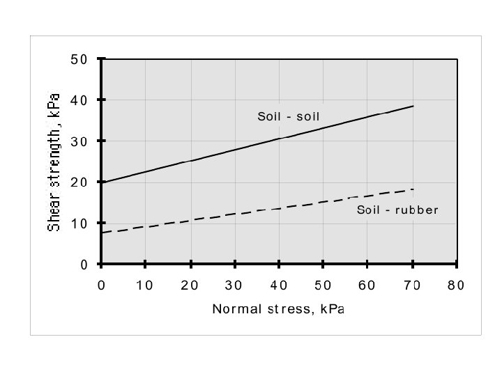 EXAMPLE 2 A rubber wheel carrying a load W of 5. 4 k. N has an effective ground contact area A of 0. 09 m 2 over which the pressure may be assumed to be uniform. The soil and rubber / soil strength characteristics are shown in Figure 4. 13. What is the maximum pull which can be generated by the wheel if: (i) the wheel has lugs which engage the soil? (ii) the lugs are removed?