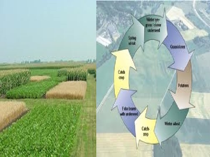 Principles of C. rotation 1. Crop of same family and same root system should not followed after each other. 2. Long duration crop followed by short duration crop. eg. S. cane----Peanut. 3. Exhaustive crops should be followed by restorative crops. eg cereals-----legumes. 4. Anaerobic crops followed by aerobic crops. e. g. Rice---wheat 5. Susceptible crops to must replaced by resistant crops.