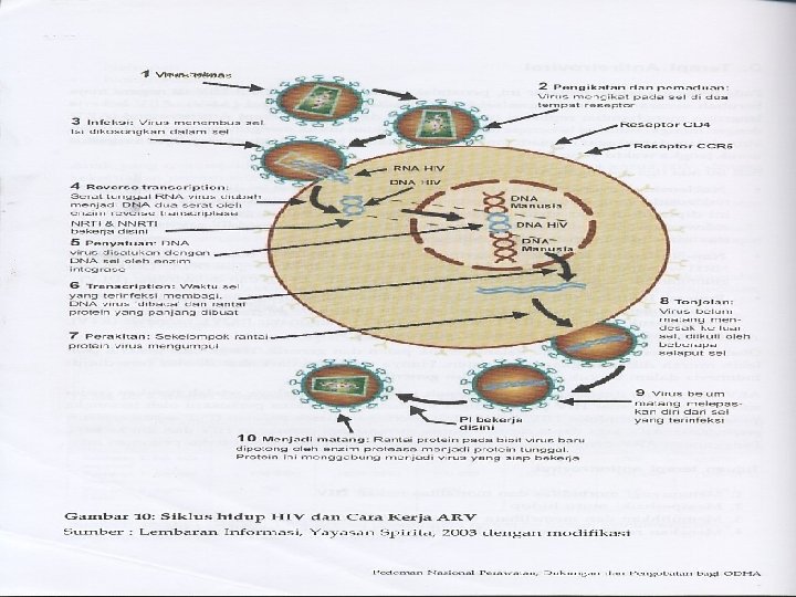 § Virus ini menyerang jenis sel tertentu yang mempunyai reseptor permukaan CD 4 terutama limfosit T 4 yang memegang peranan penting dalam mengatur dan mempertahankan sistem kekebalan tubuh. Sel lain yaitu monosit, makrofag, sel berdendrit, promielosit, mikroglia, endotelium, astrosit, dan oligodendrosit. Virus yang masuk ke dalam limfosit T 4 selanjutnya mengadakan replikasi sehingga menjadi banyak dan akhirnya menghancurkan sel limfosit itu sendiri yang menyebabkan sistem kekebalan tubuh menjadi lumpuh