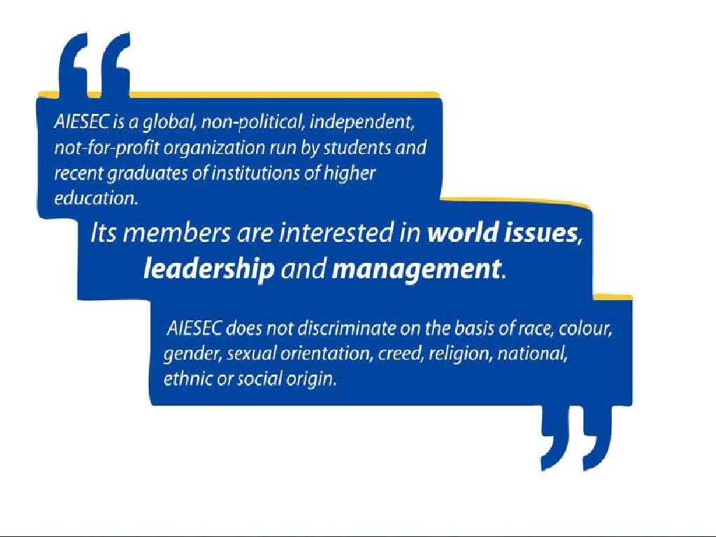 AIESEC is NOT: A Company An Exchange Agency Philanthropy But A Global Network