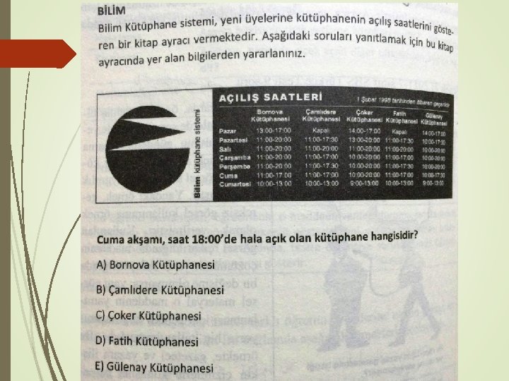 11. Seçeneklerde “yukarıdakilerin hiçbiri” ifadesi, yanıtın net bir biçimde doğru ya da yanlış olarak sınıflandırılabileceği zaman kullanılmalıdır. Bu seçenek kullanıldığında madde kökünde, tamamlanması gereken cümle yerine soru ifadesi olmalıdır çünkü “yukarıdakilerden hiçbiri” ifadesi tamamlanmamış cümleyi tamamlamada dilbilgisi kuralları bakımından sıkıntı yaratır.
