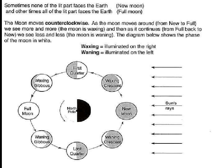 Moon Rising • The moon generally rises in the east and sets in the west • But…. . because the Earth is rotating at a faster rate than the moon revolves around us……the moon will appear to rise about 50 min. later each day