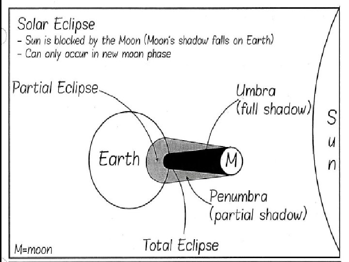 IMPORTANT REGENTS QUESTION: WHY DON’T WE HAVE A SOLAR OR LUNAR ECLIPSE EVERY MONTH? ANSWER: • ITS ORBIT IS INCLINED AT ABOUT 6 DEGREES SO THE EARTH, MOON AND SUN DON’T ALWAYS LINE UP!